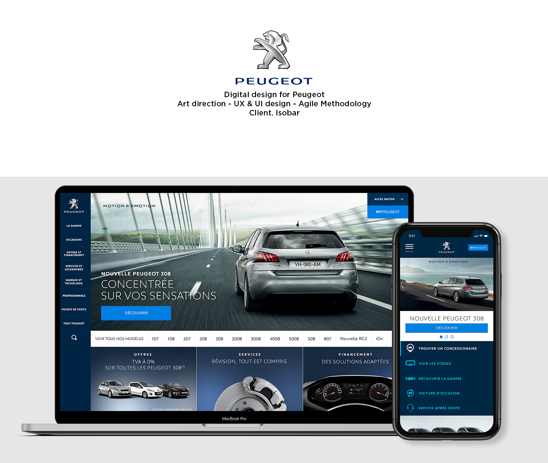 Design pour le nouveau site Peugeot UX & UI Design - Méthode Agile DC. Laurent Nuyen, Kevin Ulvé I Client Isobar